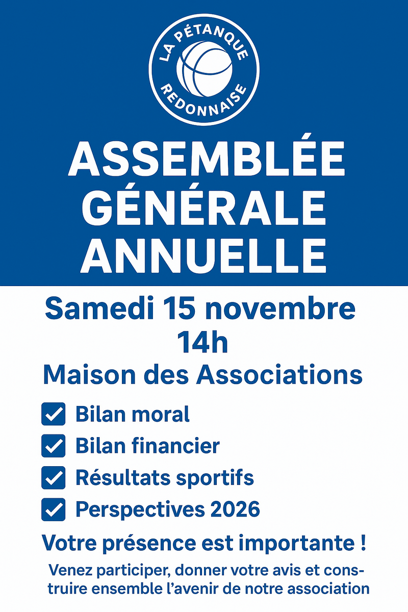 Assemblée Générale du club Samedi 15 novembre 2025 à 14h